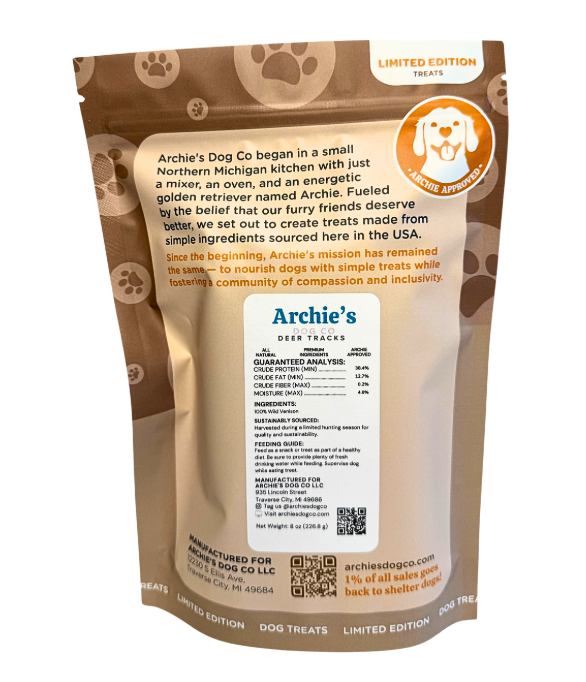 Indulge your furry friend in the wild and nutritious goodness of Deer Tracks - 100% Venison Sticks! Made with real venison, these treats are packed with protein and flavor to keep your dog happy and healthy. Perfect for training or as a tasty snack. No wonder dogs go buck wild for them!