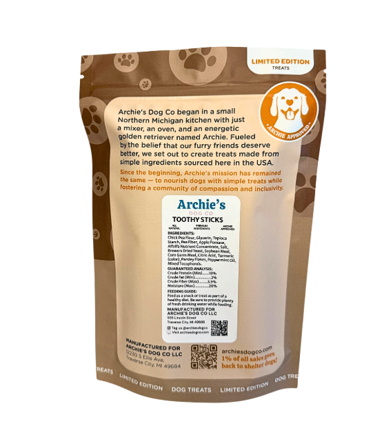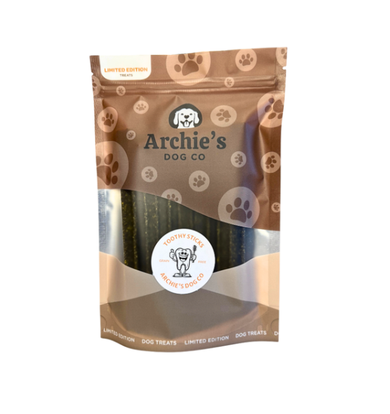 Introducing Toothy Sticks – Your Pup's Ultimate Dental Delight! Our premium dog chews are crafted with care to keep your furry friend's teeth clean, healthy, and happy. Made from high-quality, all-natural ingredients, Toothy Sticks provide a satisfying chewing experience that promotes dental hygiene and supports strong gums. Treat your canine companion to a flavorful adventure while ensuring optimal oral care. Shop Toothy Sticks now and give your dog the joy of a healthy smile!